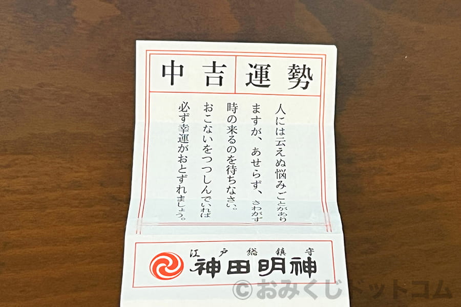 ※神田明神 引いたおみくじは「中吉」だった様子|画像提供:おみくじドットコム