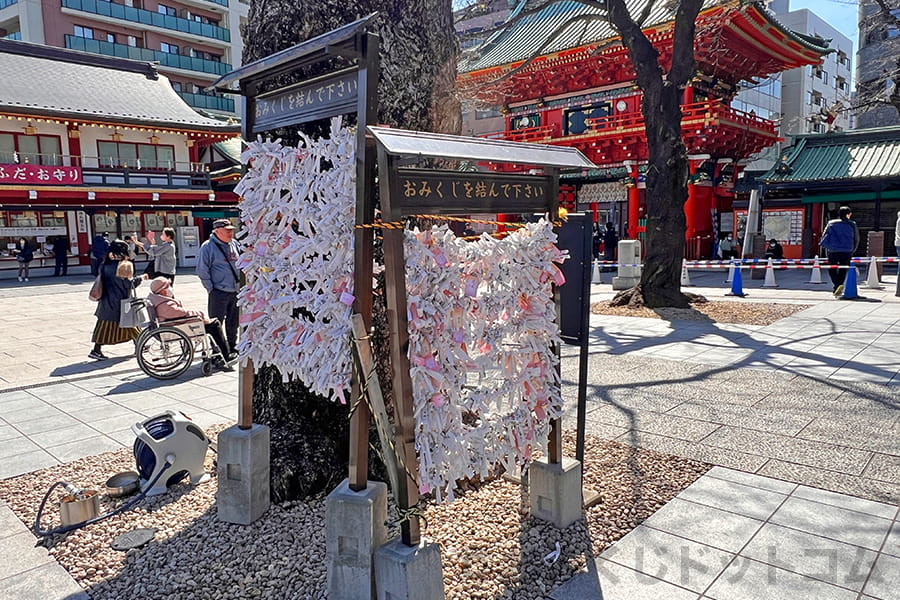 ※神田明神 境内の文化交流館前にあるおみくじ掛け(おみくじ納所)の様子|画像提供:おみくじドットコム