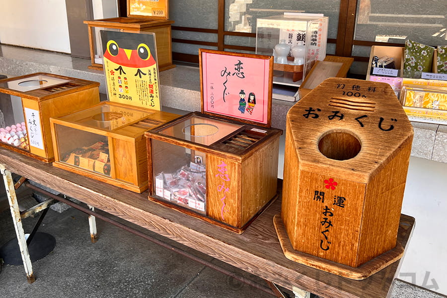 ※湯島天神 授与所窓口横にある各種おみくじの様子|画像提供:おみくじドットコム