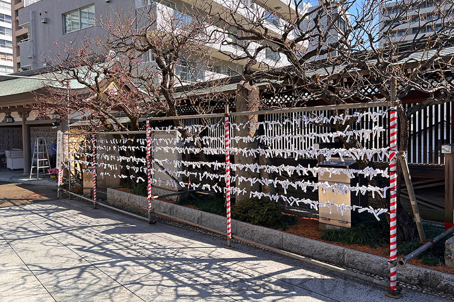 ※湯島天神 境内の拝殿・本殿の右側を回り込んで少し奥に行ったところにあるおみくじ納所の様子|画像提供:おみくじドットコム