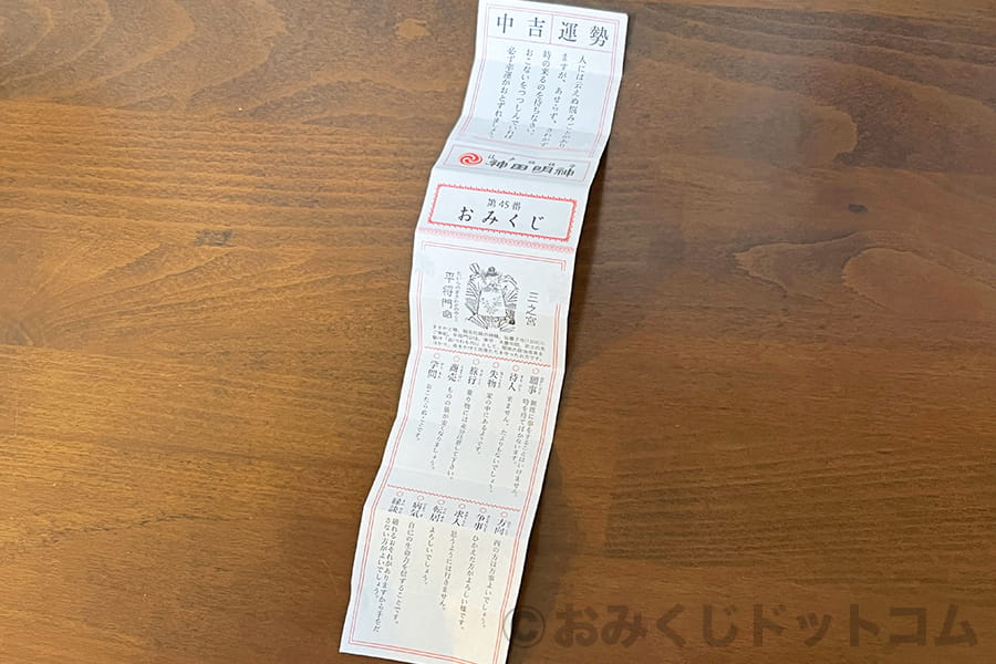 ※神田明神 引いたおみくじは「中吉」だった様子|画像提供:おみくじドットコム