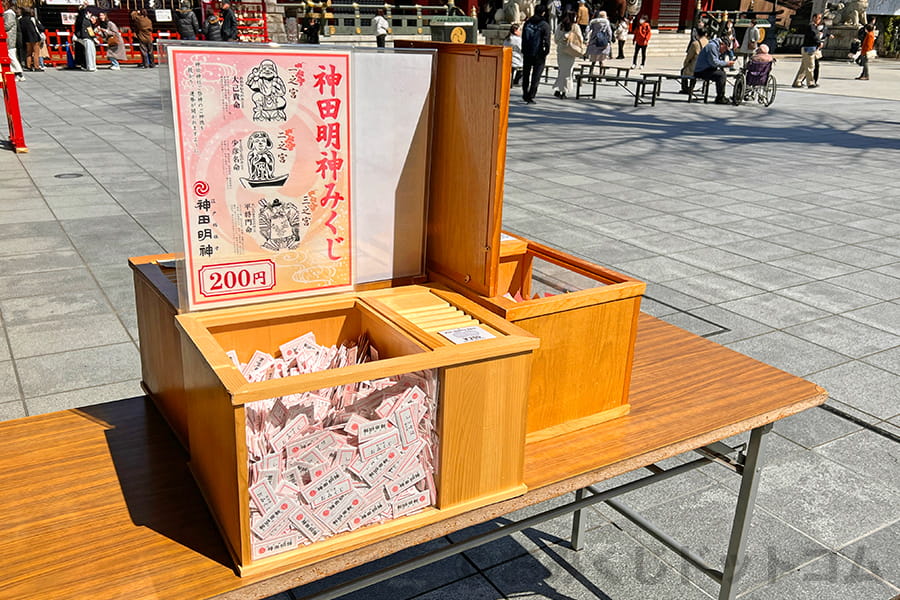 神田明神を参拝した人の多くが楽しみにして引くおみくじ。