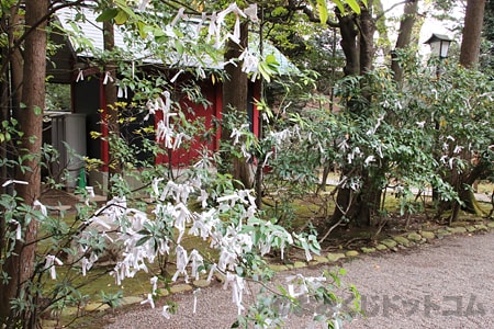 こちらの神社では、境内の木の枝にもおみくじが結ばれていました。
